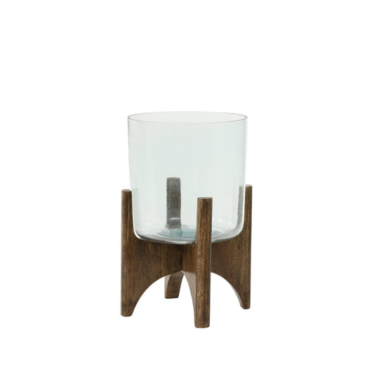 Vase en verre sur pied en bois de manguier JACE Ø22